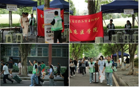早在迎新工作启动前,临床医学院便成立专项工作组,从流程设计、物资筹备到志愿者培训,进行全环节统筹。学院在学校大门、林荫大道、宿舍楼等关键点位设立“迎新服务站”,醒目的 “临床医学院接待处” 标识清晰明了,志愿者们身着统一服装,主动上前接过新生的行李,耐心指引报到流程 —— 从身份核验、资料提交,到校园卡激活、宿舍钥匙领取,再到生活用品发放,“一站式” 服务让新生无需多跑一趟。辅导员们提前梳理新生信息,针对家庭困难学生、异地求学新生建立“一对一” 联系,主动提供帮助,让新生感受到 “家” 的温暖。