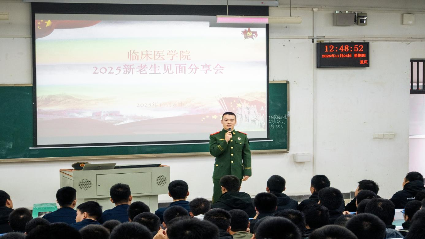 为帮助军士生精准规划军旅生涯,提前了解岗位任职需求,2025年11月6日下午,临床医学院于东教学楼1307教室召开一场以“青春铸军魂榜样引前行”为主题的新老生见面分享会。活动邀请了22级优秀毕业生、现服役于新疆的学长,为军士班的学弟学妹们带来了一场干货满满、情感真挚的分享会。