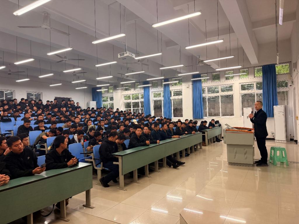 现在新疆喀什武警部队服役的丁思霖学长分享了自己在军士班的成长经历与感悟,为新生们提供了宝贵的经验借鉴。结合自己两年多的军士班经历以及军队生活,从军事训练、作风养成、学业学习、社会实践等方面,向新生们讲述了自己的蜕变历程。他表示,刚加入军士班时,自己也曾面临训练强度大、纪律要求严等诸多挑战,但在学校老师的关心帮助与同学们的相互鼓励下,他逐渐适应了军事化生活,不仅军事技能得到了显著提升,意志品质也变得更加坚毅。